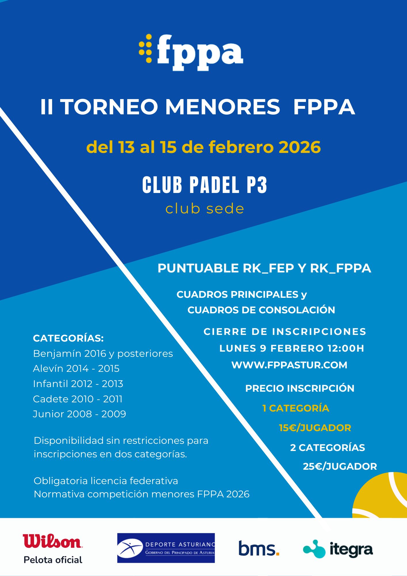 Inscripción1 Categoría 15€ / 2 Categorías 25 €