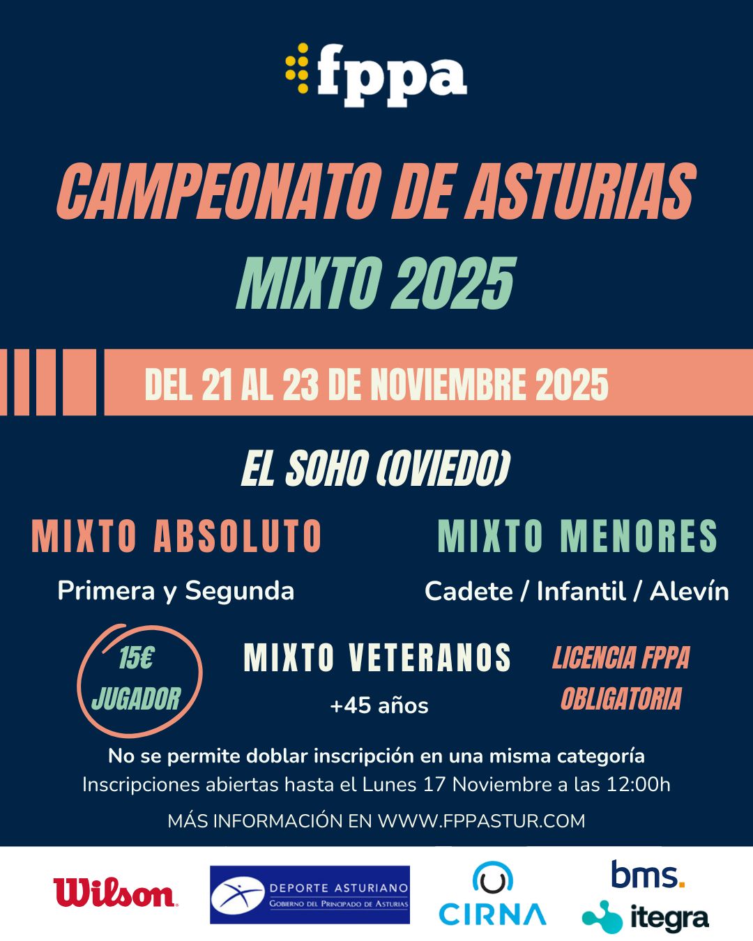 Inscripción15€ una categoría / 25€ dos categorías €
